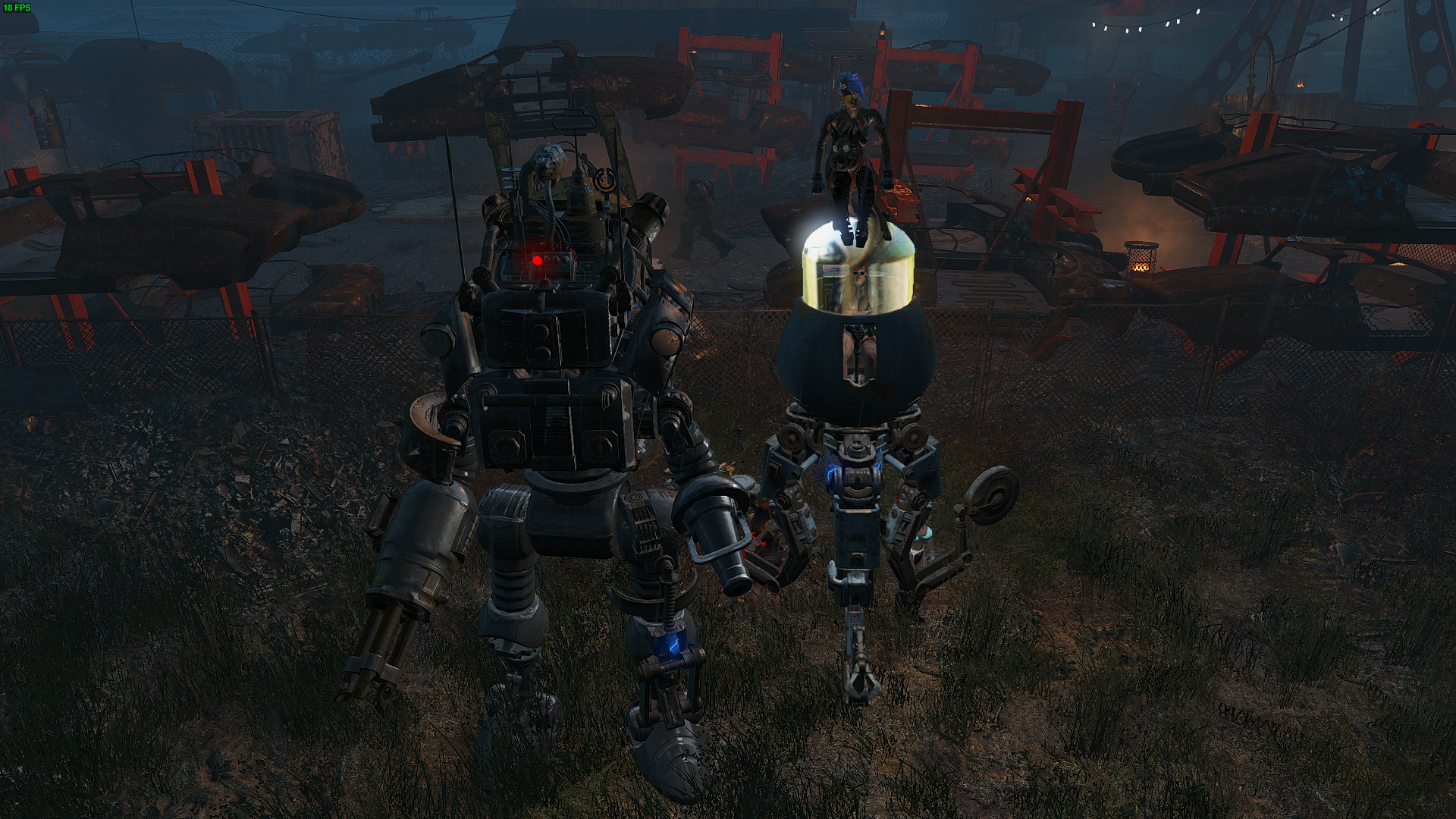 Алиса внутри "Тип-Помошник", Айви и собака на его колпаке и Кейт внутри "Тип-Штурмотрон".
