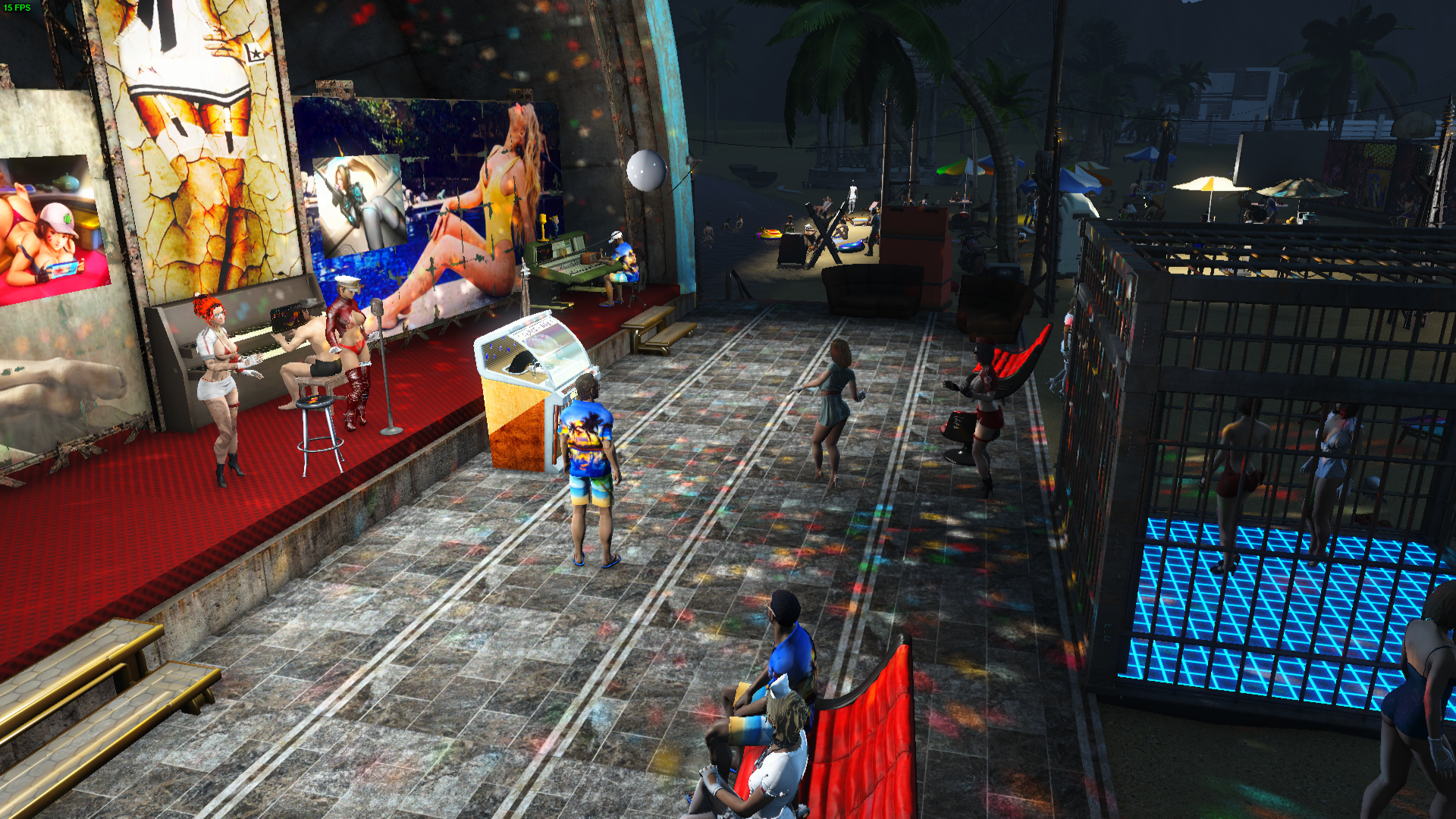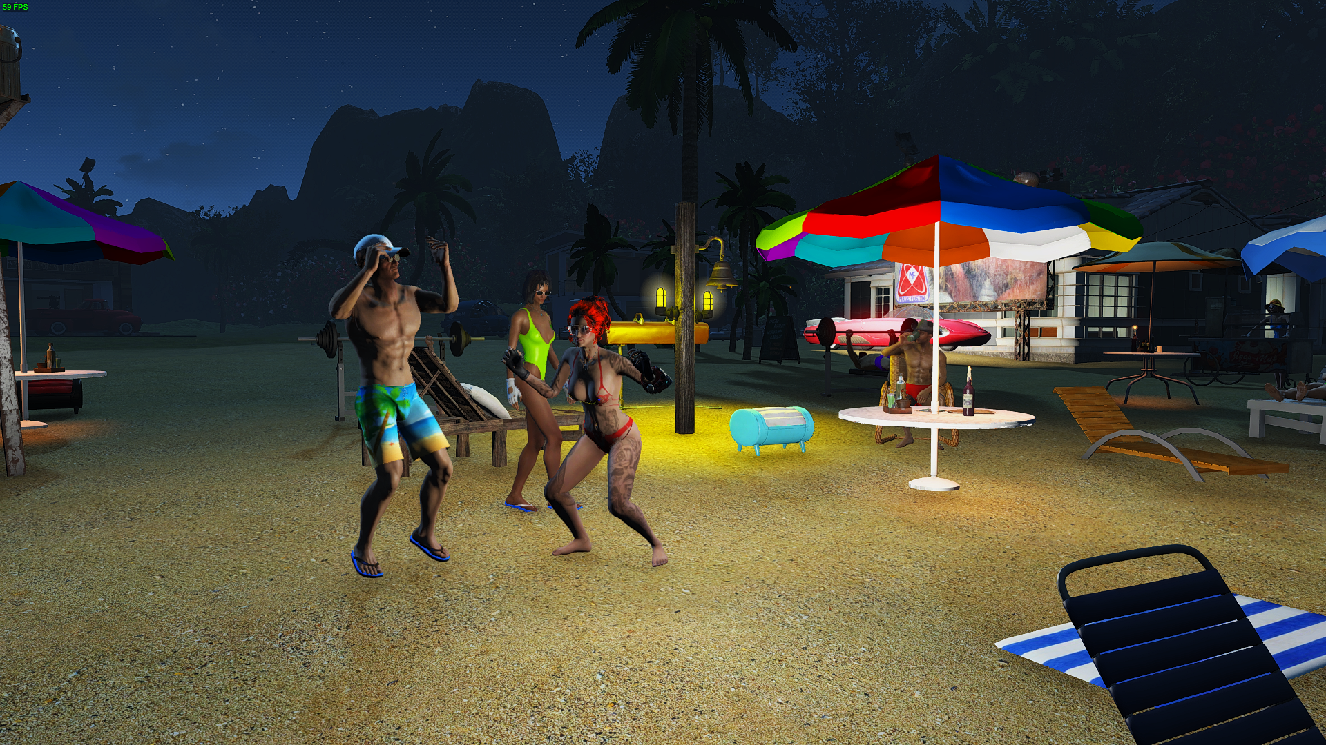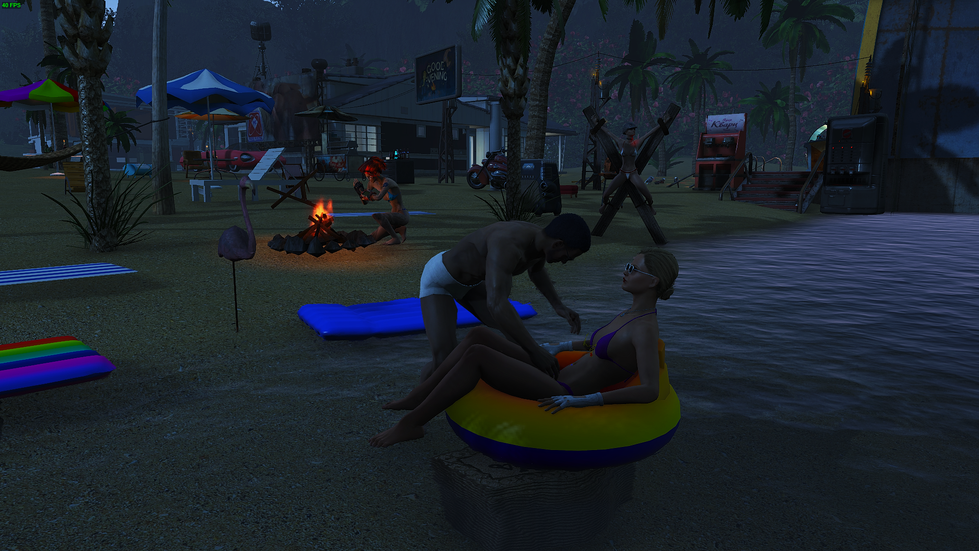 Танцы на пляже ночью.