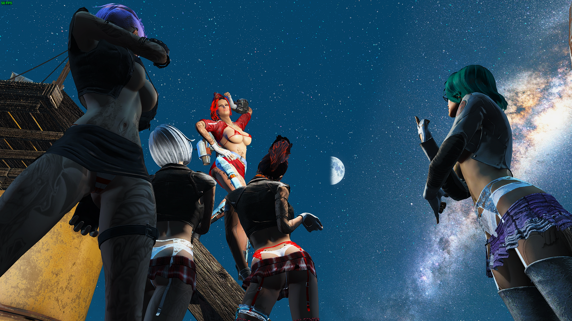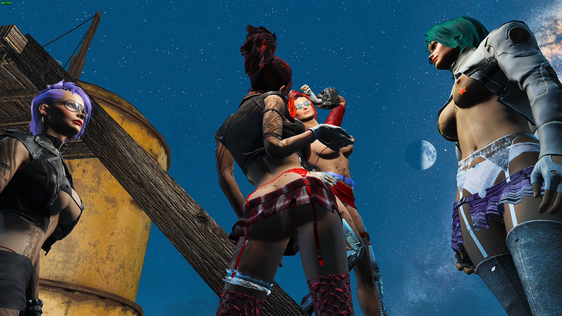 Слева на право: Рокси, Кейт, Айви, Валькирия и Алиса в поселении «Ферма Виндзора» в Ядер-Мире.