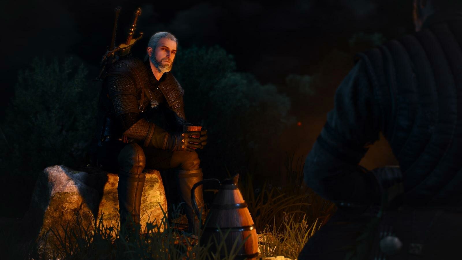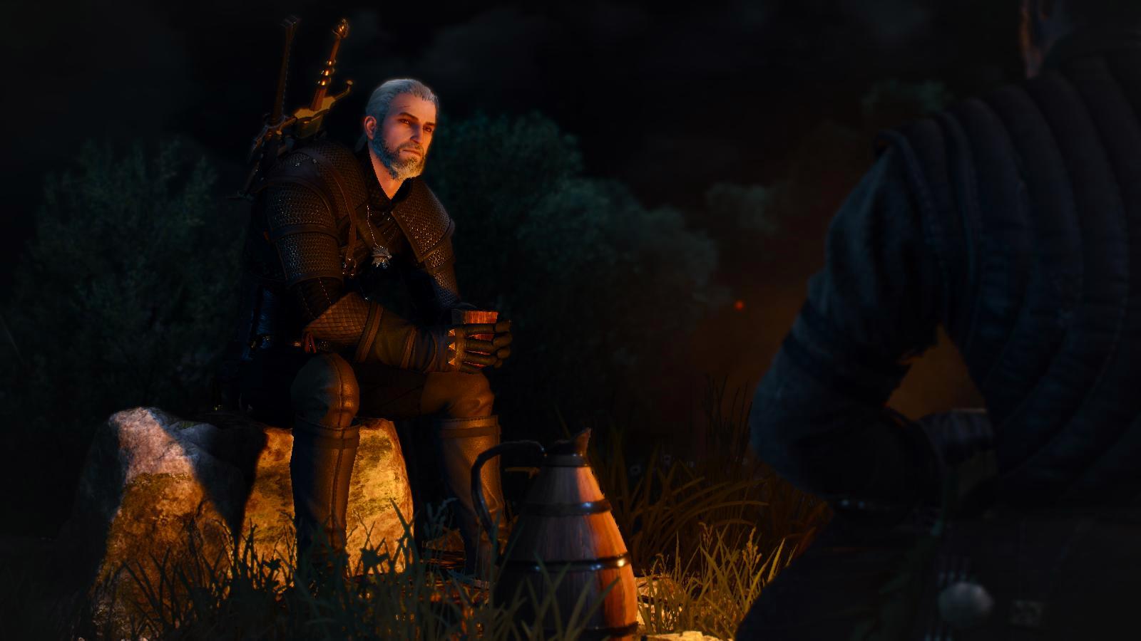 Геральт у костра.. Ведьмак III (сборка Торна)
