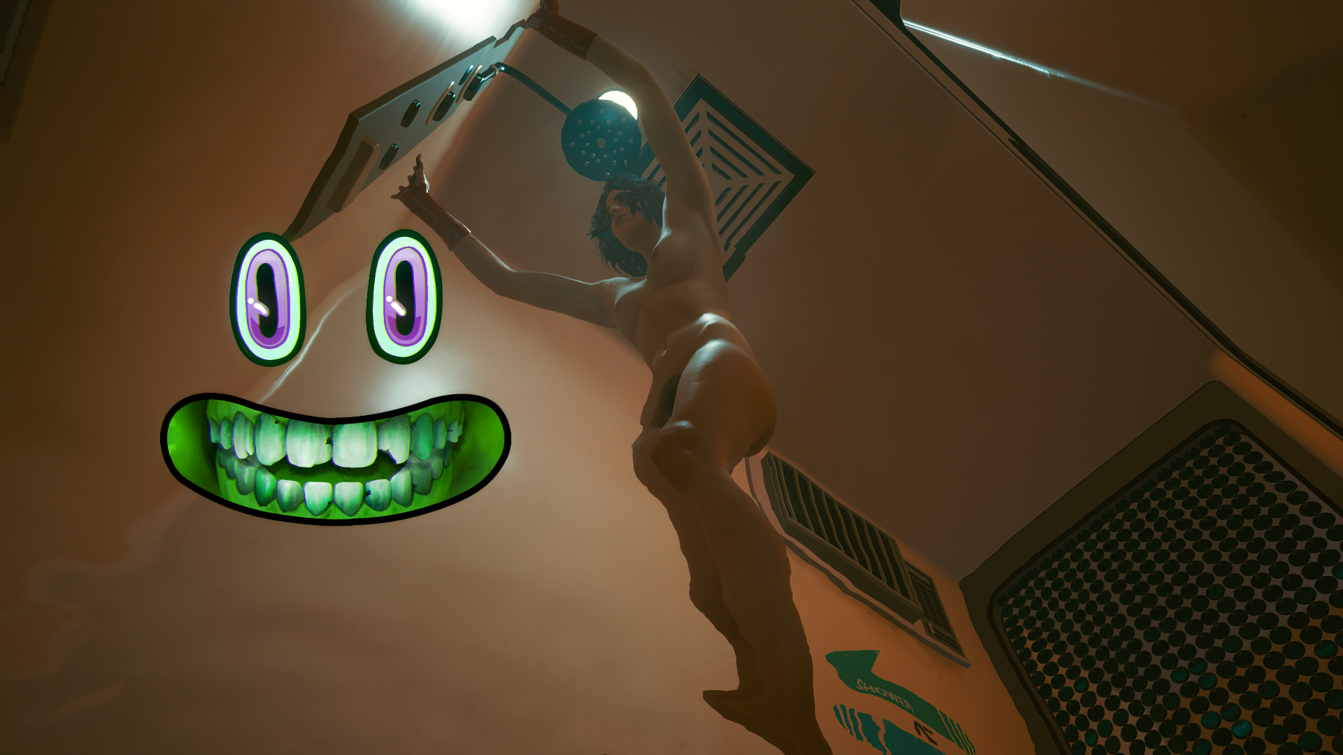 Кадр из под поверхности тонкого слоя на полу душевой.