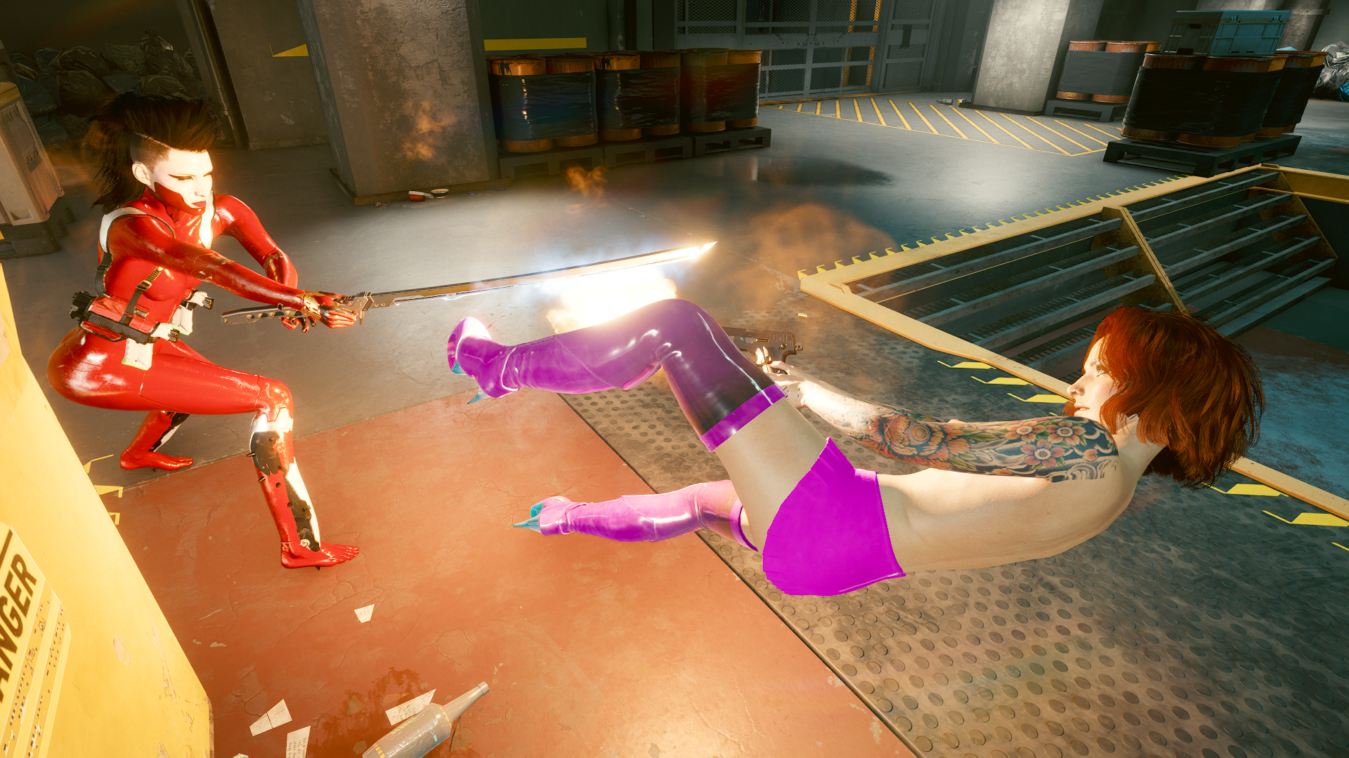 Не наносящим смертельный урон пистолетом.