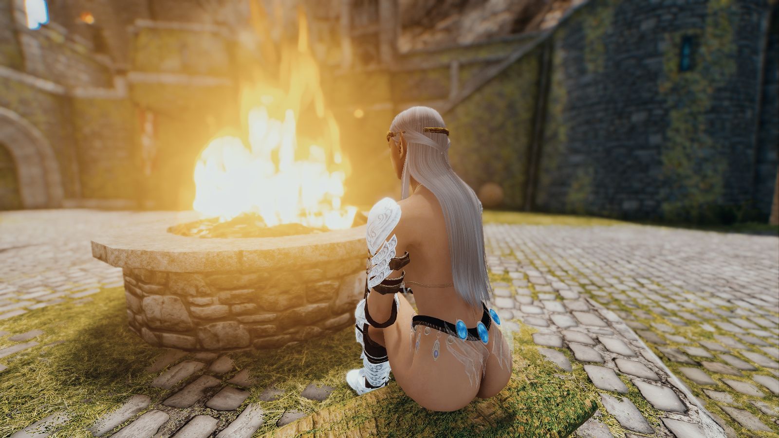 Эллайна возле огня в Солитьюде..