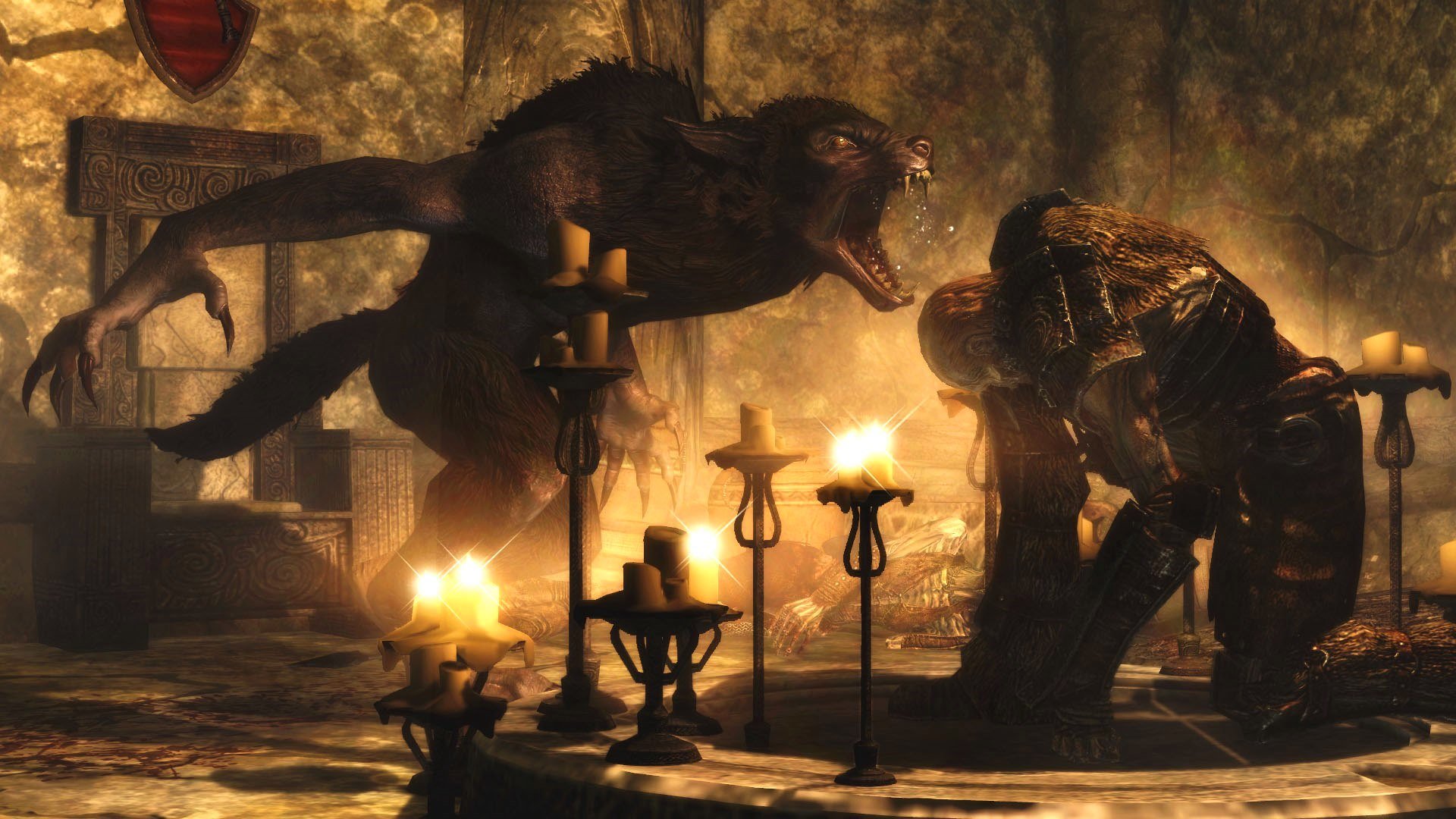 Вервольф обижает драугра.. Skyrim LE