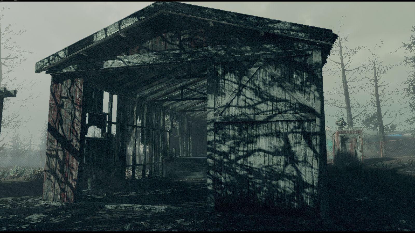Тени веток на стенах амбара, хороши..