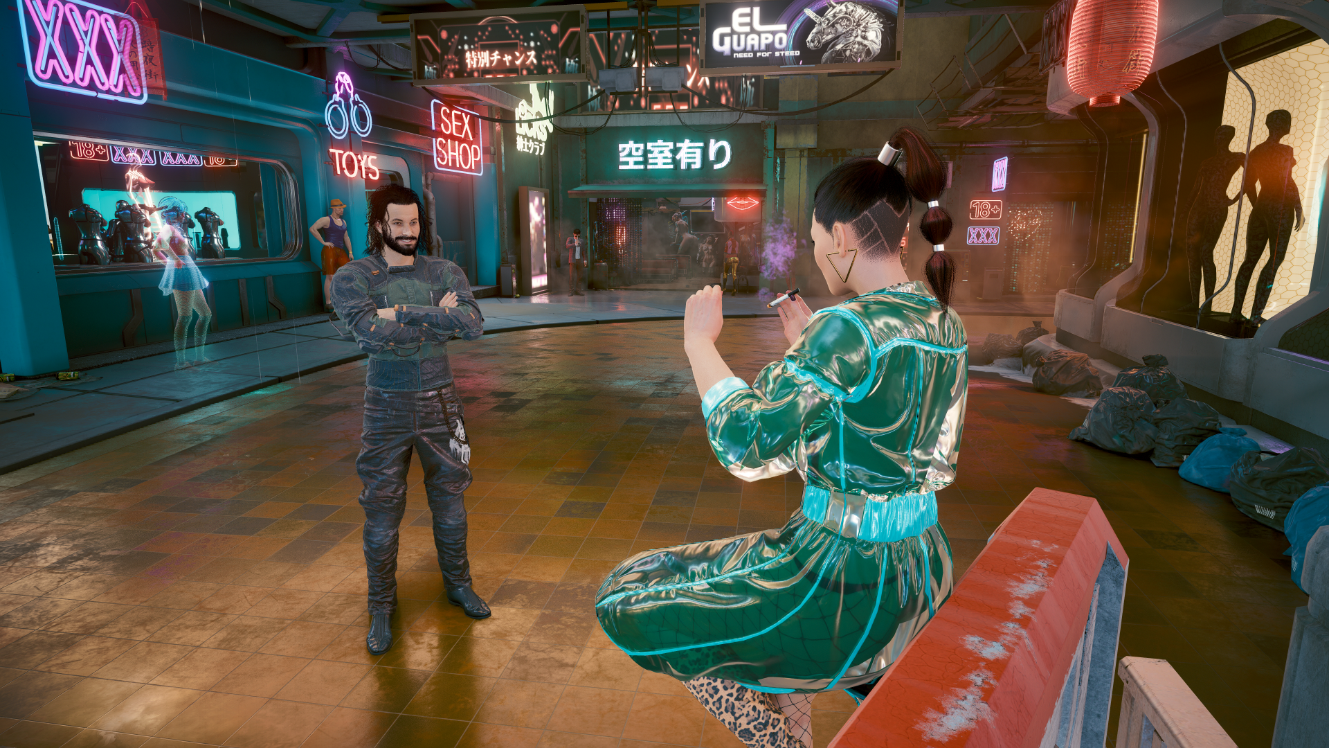 На улице Чпок-стрит. Средоточие грязных фантазий Найт-Сити лучше отправляться после наступления темноты. Чпок-стрит — район красных фонарей в Джапан-таун (Уэстбрук).