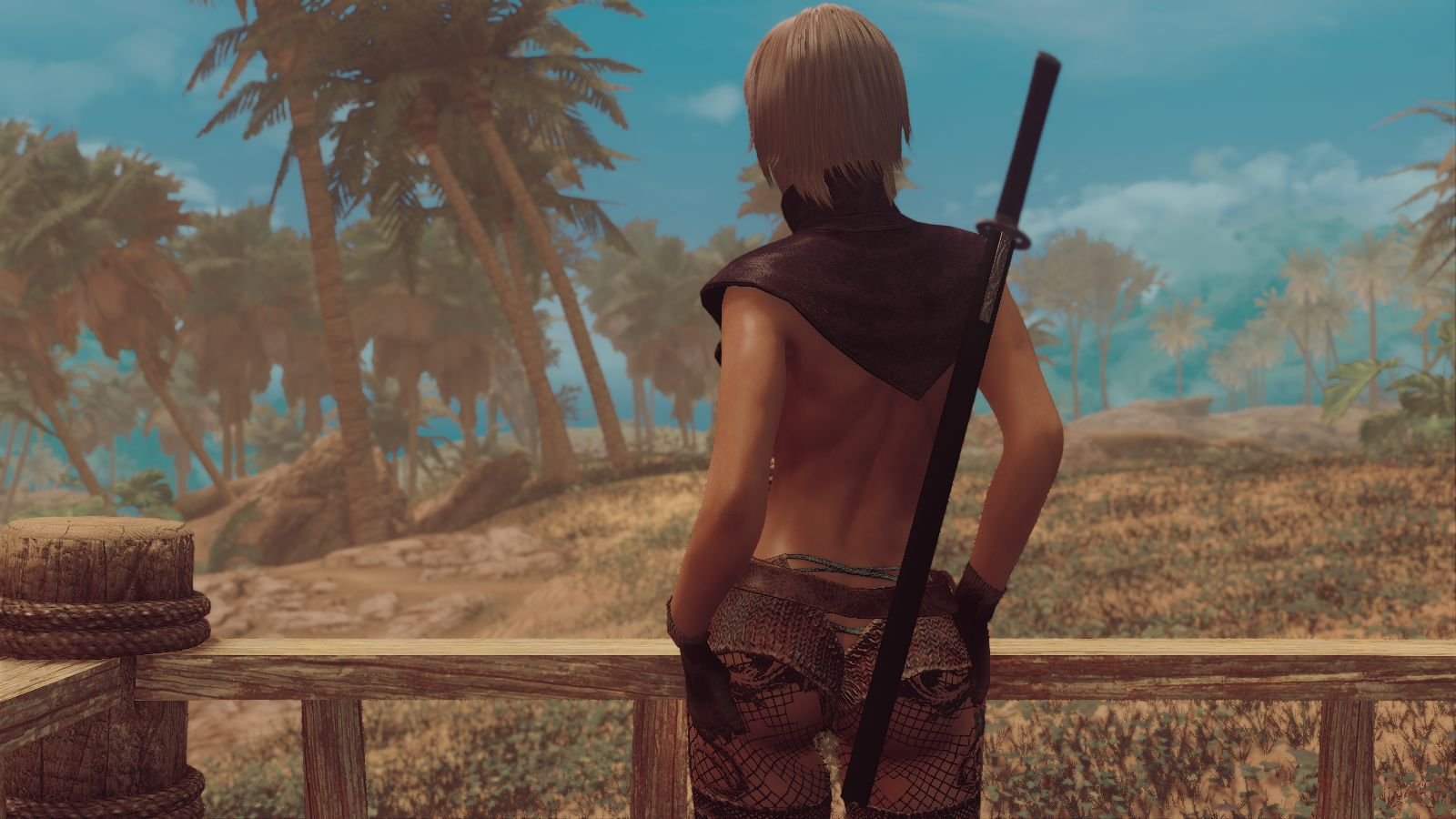 Кто то позаботился о ней и оставил ей в тайнике немного одежды и меч, с которым она прекрасно управляется.