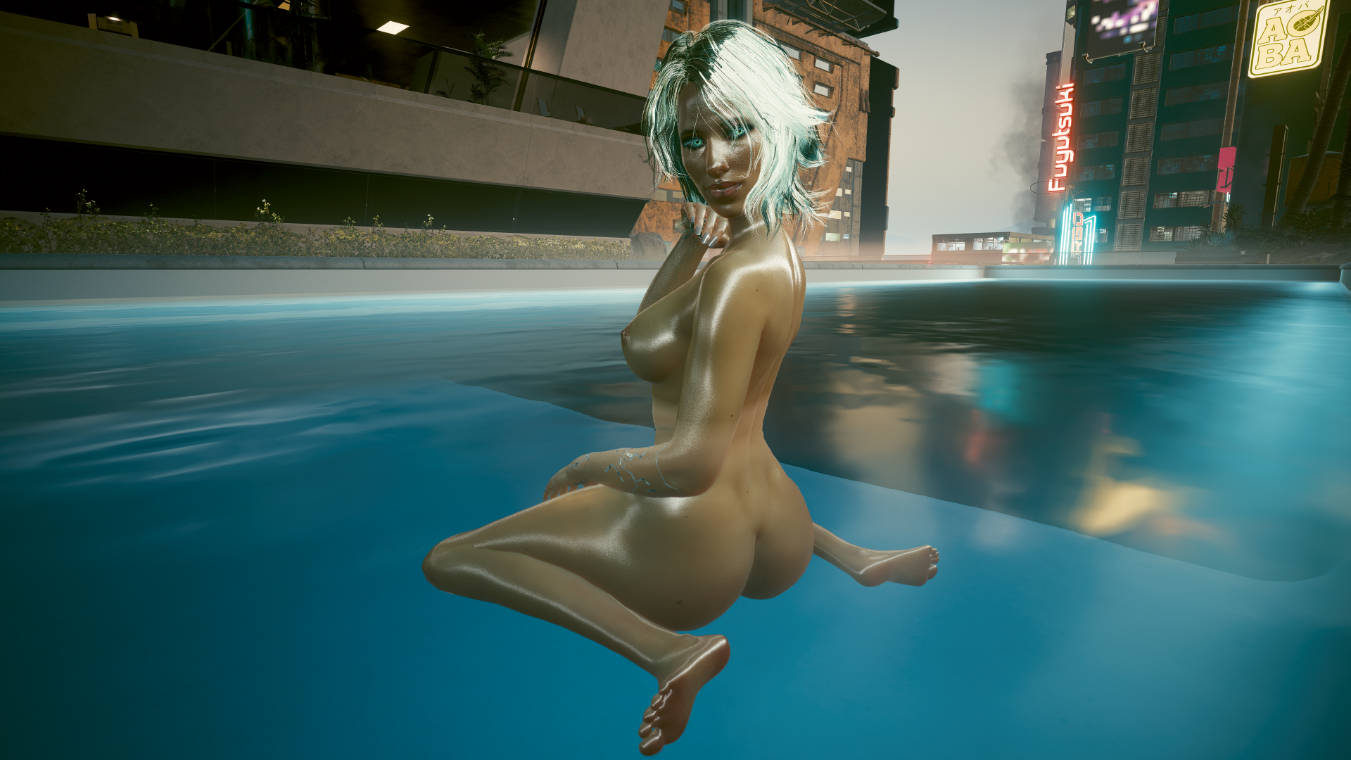 Ранним утром в своём бассейне.