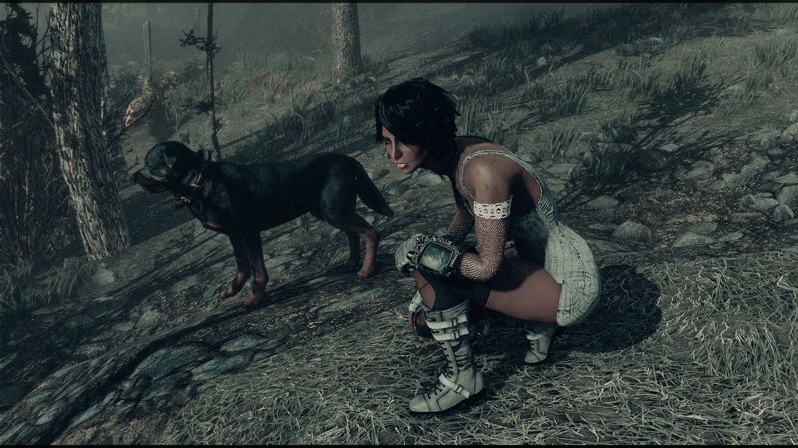 Первый раз пробую играть "по классике", чтоб перс ходила по Содружеству с собакой! Всегда играла только "одиночкой"! Из спутников у меня только Кейт, и то потому, что у нее лучшая скрытность. (Кюри даже не разу не видела!)