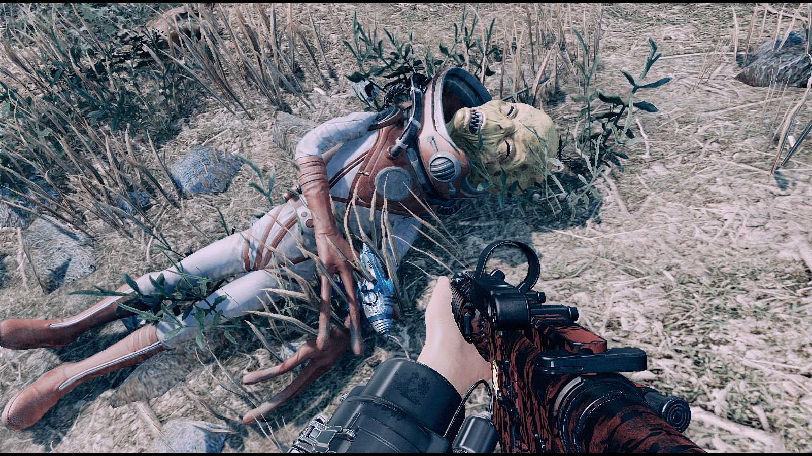 Уну везде поджидает опасность! Помимо "очень сложного уровня" игры, когда попадается много легендарных врагов, - у меня ещё стоит моды на дополнительных врагов! Среди новых врагов - пришельцы и НЛО, отряды рейдеров и супермутантов, стаи голодных зомби, и мутировавшие дельфины )))