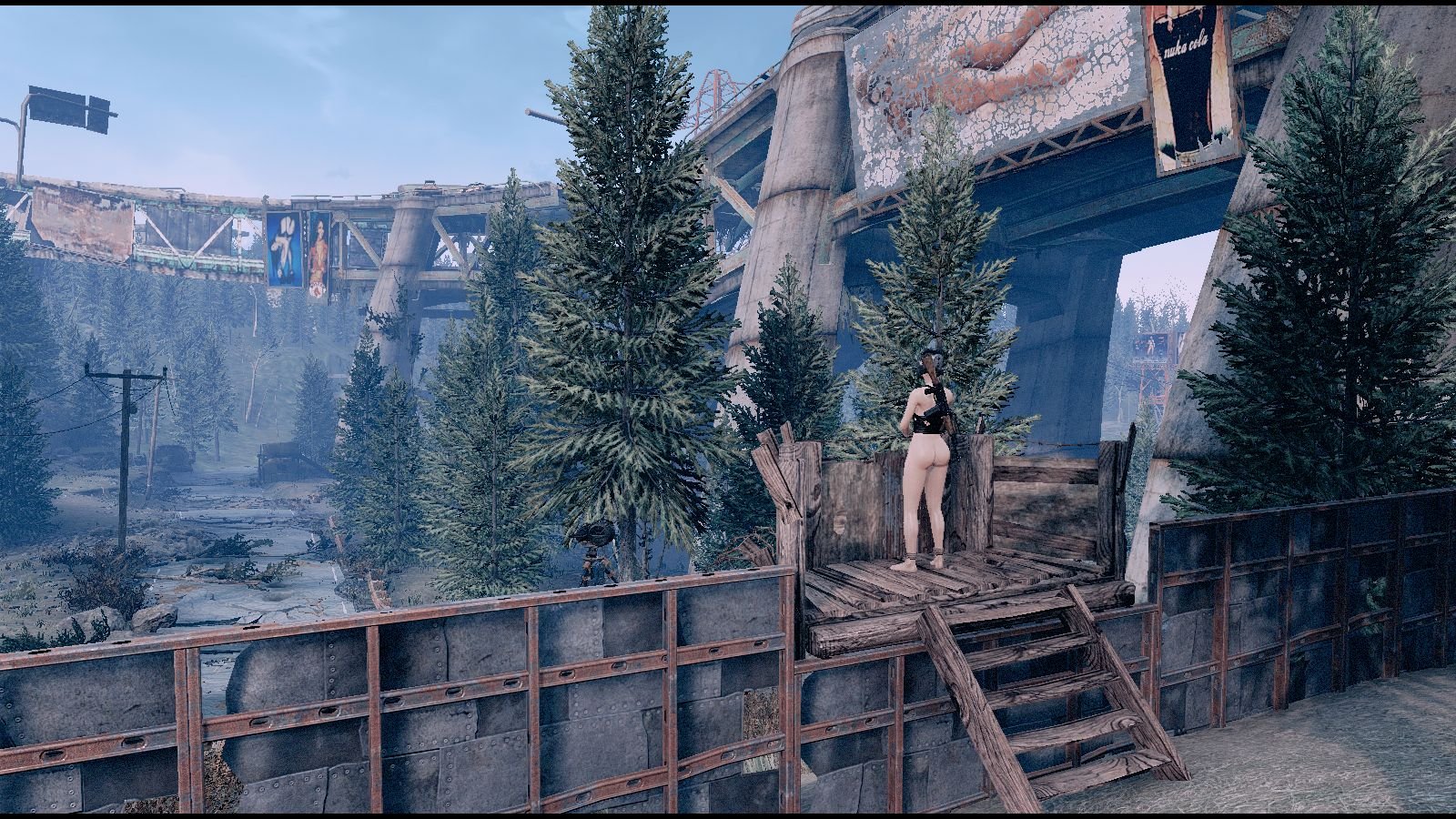Большое не ванильное поселение. Можно занять часть моста наверху. Много места. Рядом с опасной дорогой, где нужна хорошая защита.