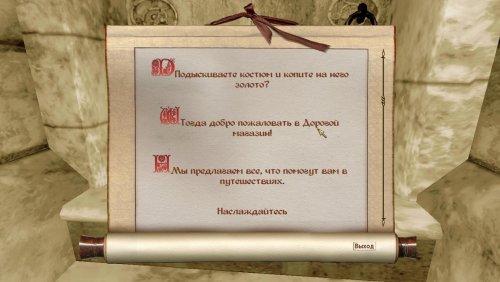 Дамин и Миши отремонтировали магазин «Имперская мебель», расположенный к северу от Имперского города, приобрели коллекцию оружейных стоек, шкафов, кроватей, картин, ковров, сундуков, свечей и другой разнообразной мебели и начали торговать. Буквально за короткий период их магазин превратился в один из лучших мебельных магазинов Сиродила!!!