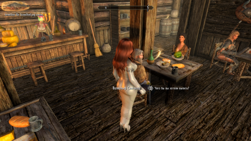 Работа служанкой в таверне. Подходишь к трактирщику (на скринах я подошёл к Кираве, трактирщице из Пчелы и Жала в Рифтене) и спрашиваешь о работе. После разговора на ЖГГ надевают DD и начинают гонять по мелким поручениям. Брать заказы у клиентов, готовить еду, ходить на рынок за припасами. На работу принимают Эльда в Виндхельме, Хульда в Вайтране, Кирава в Рифтене, Клепп в Маркарте и Корпулус в Солитьюде.